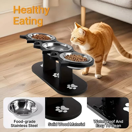• Elevated Pet Feeder with 15-Degree Tilted Bowls and Adjustable Height for Enhanced Feeding Comfort