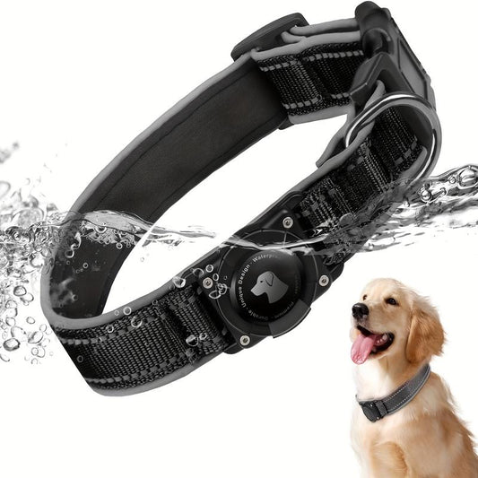 Waterproof Airtag Dog Collar - Heavy-Duty Design with Enhanced Reflective Strips and Soft Padded Holder - Adjustable Nylon Strap for Dogs of All Sizes