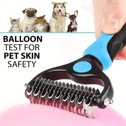 Professional Deshedding Brush for Dogs and Cats – Double-Sided Undercoat Rake with Stainless Steel Teeth – Effective Shedding and Mat Reduction – Gentle Dematting Tool for Long-Haired Pets